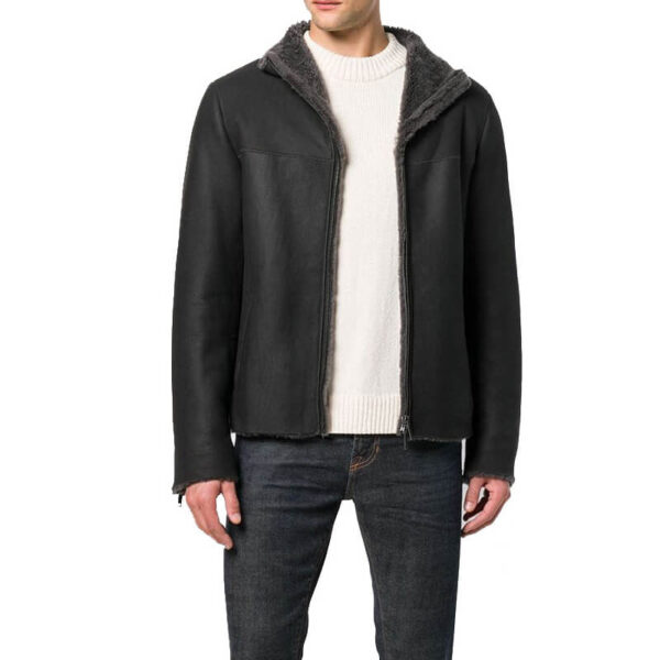 Vintage Mens Brown Leather Motorcycle Jacket with Removable Hood