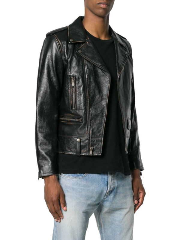 Men's Asymmetrical Zipper Biker Shearling Brown