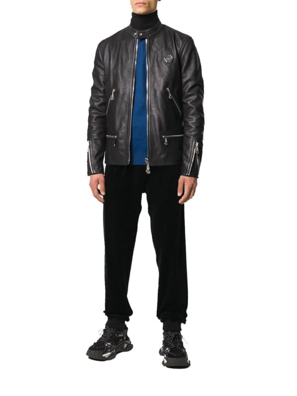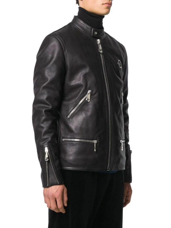 Men's Asymmetrical Zipper Biker Shearling Brown