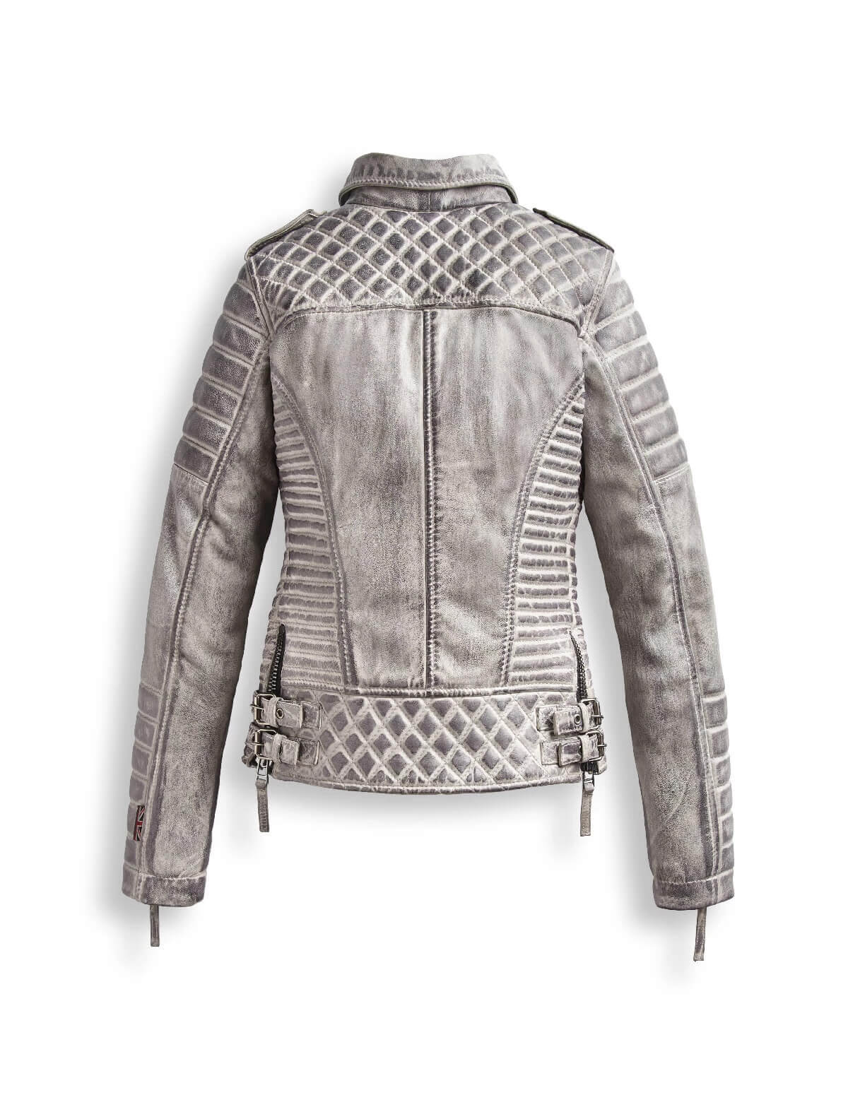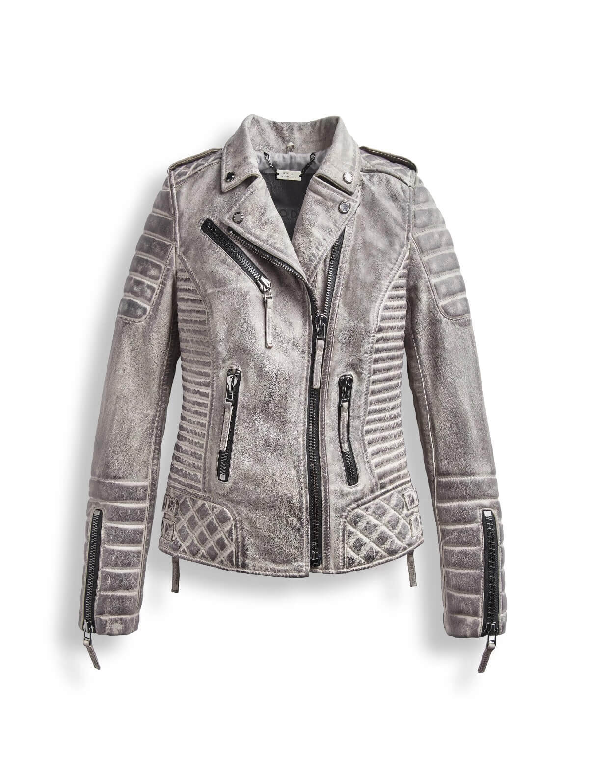 Women Bomber Style Smoke Grey Leather Jacket